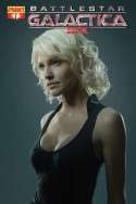 This graphic novel supplies the back story of the Cylon "Six" from the re-imagined BATTLESTAR GALACTICA series. We're first introduced to "Rebeka", who works in a space mine on the planet Troy. Then, there's an identical woman, "Eve", being kept in a mental institution, who has no recollection of her memory. She likes putting together puzzles and has a violent streak. She eventually escapes and reveals who she is to a human she becomes close to, that she's a Cylon. He tells her she isn't a machine and she corrects him-"Cylon. Not machine". When Rebeka is killed while working she awakens in a regeneration chamber is is greeted by the five other human Cylons. And there's another version, Mary, who feels unfulfilled in her life and jumps ship, holding an anchor, drowning herself. She also wakes up in a regeneration chamber and is greeted by another Six, the mirror-image of herself. Their experience in these lives is making them more human. Eventually Eve is also killed-and comes back, only to learn her true purpose and who she is-and that she's the Cylon who meets Gaius Baltar on Caprica.